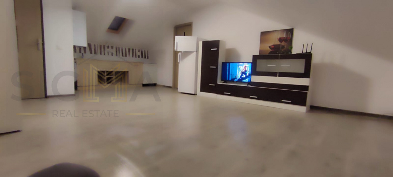 Apartamentul are suprafata utila de 50mp si este compus din: living cu bucatarie, dormitor, baie cu geam si hol. Apartamentul se afla la mansarda unui imobil 3 etaje, dotat cu interfon. Apartamentul detine finisaje moderne, centrala electrica proprie, masina de spalat, plita electrica, geamuri termopan, gresie si faianta moderna si se inchiriaza mobilat si utilat!