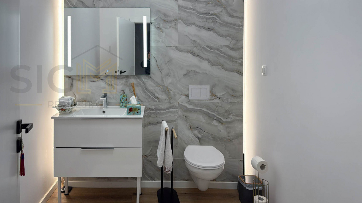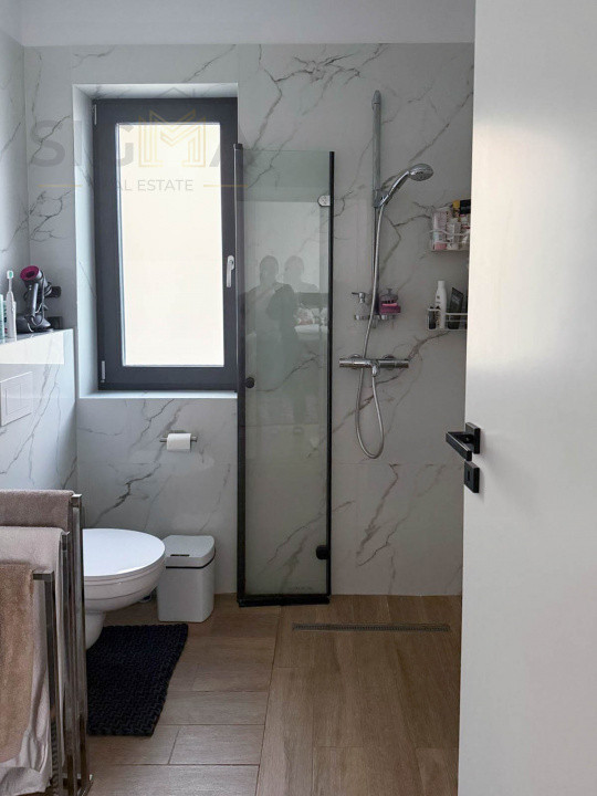 Finisajele pe care le detine sunt moderne printre care enumeram parchet din lemn, usi din lemn, gresie, faianta moderna, centrala termica individuala, geamuri termopan, incalzire in pardoseala, sistem de alarma, acces auto automatizat etc.