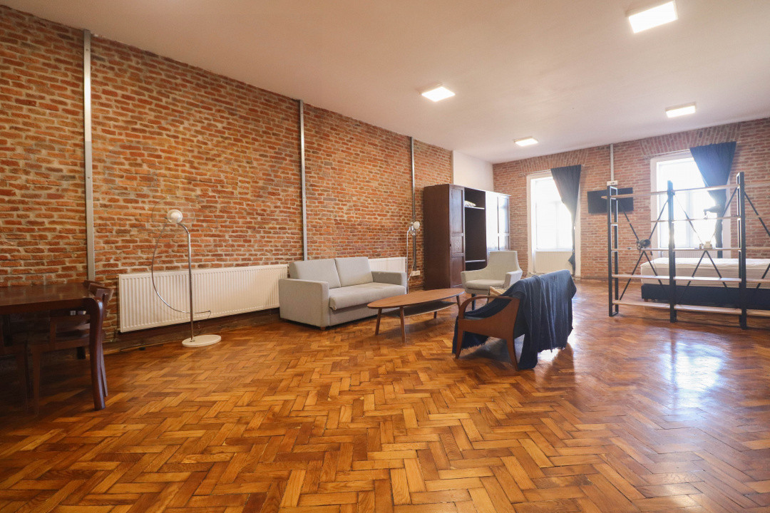 Un spatiu generos, cu o suprafata utila de 86 mp compus din camera cu vedere la Piata Unirii, bucatarie si baie.