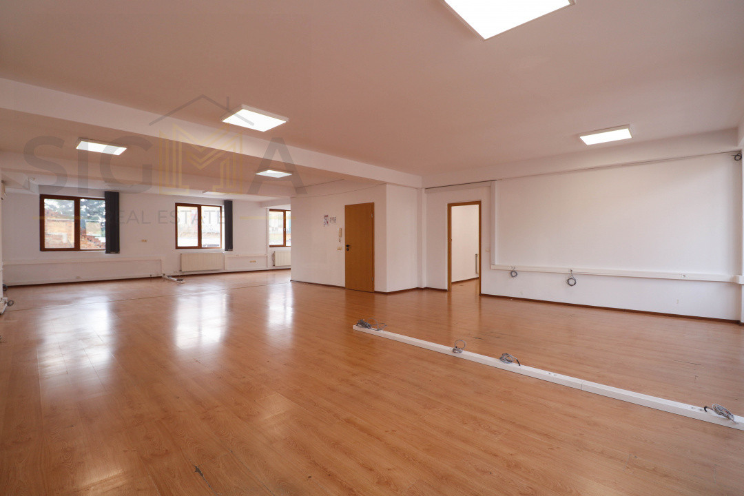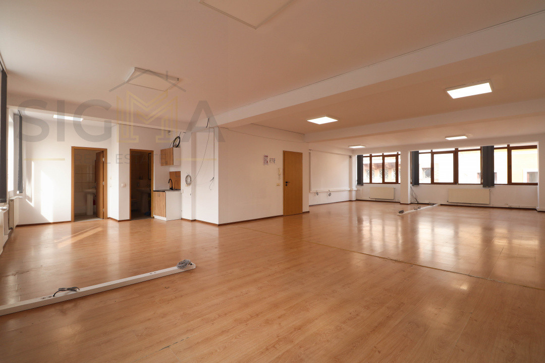 Spatiul are suprafata utila de 128 mp, situat la etajul 2 al unei cladiri de birouri cu 3 etaje. Acesta este compartimentat in doua incaperi si doua grupuri sanitar. Acesta detine finisaje moderne precum gresie, faianta, parchet laminat, geamuri pvc, centrala de imobil si se inchiriaza nemobilat.